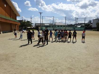 「ちいちゃんのかげおくり」を読み進めていますが、昼休み、運動場で自分たちも実際にかげおくりをやってみました。うまくできると歓声が起こり、上級生もやってきて、一緒にかげおくりをしていました。