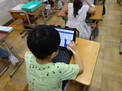 学習を終えた終盤には、学習を振り返るためにタブレットを使っています。学習の効果を高めるために、これからも約束をしっかりと確認しながら適切に使っていきたいです。