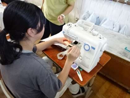 トートバッグを作っています。ミシンを使って作成していますが、実際に使うことを楽しみに、ていねいに取り組んでいます。
