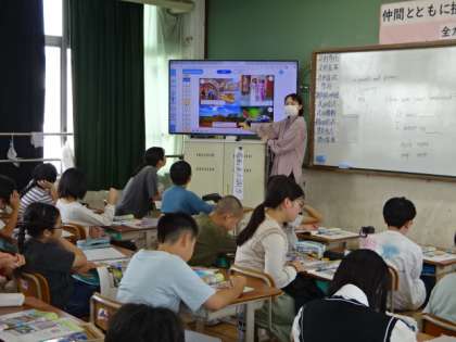 中学校の英語の先生も一緒に入っての学習です。中学校生活が気にかかるころになってきた6年生ですが、今できることを一生懸命に取り組んでいます。
