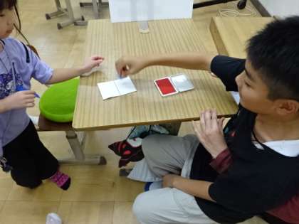 昼休み、3組の教室に1・2年生を招待して、一緒に遊んで楽しいひと時を過ごしました。遊びに来てくれた1・2年生の友だちに「アンパンマン」のスタンプを押してあげました。短い時間でしたが、お互いにいい交流ができました。