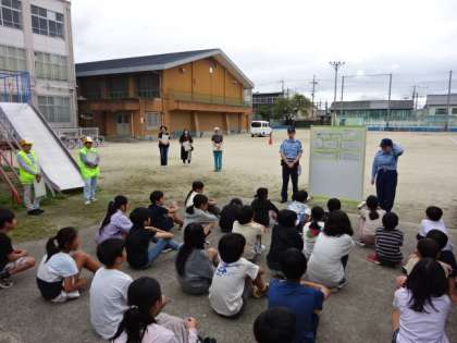 4年生を対象に自転車安全教室を行いました。中京警察署交通課、地域の方々、そしてPTAの保護者みなさんの協力のもと実施されました。