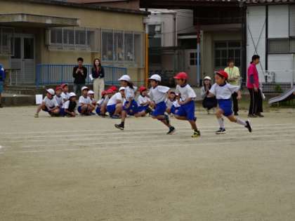 1・2年生は、徒競走・学年リレー(折り返しリレー)・団体演技「みんないっしょにハッピーダンス☆」に取り組みました。1年生にとっては初めての運動会でしたが、2年生に引っ張ってもらい、一緒に頑張りました。