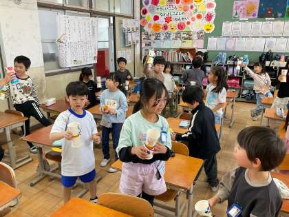 生活科の学習で、秋見つけで集めたものを使ってけん玉を作りました。工夫しながら楽しく作品づくりに取り組む姿が見られました。次は「どんぐりごま」を作ります。どんな作品になるか楽しみですね。