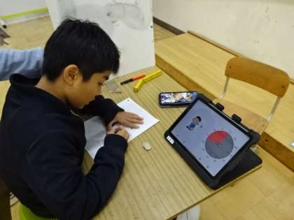 算数の時間、プリント学習に集中して取り組んでいました。プリントの後は、買い物を通して、たし算の学習をしていました。