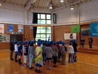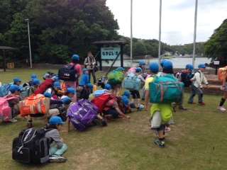 なかよし港に着きました。いよいよみさきの家に到着です。体調不良を訴える子もなく、みんな元気です。入所式を行いました。
