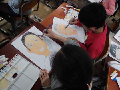 その後,いっしょうけんめいに色を調合し,自分だけの自画像にさらに近づいてきました。完成が本当に楽しみです。来週21日(火)の4年生・参観懇談会の日を楽しみにしていてください。