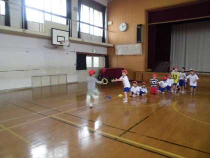 今日は置き換えリレーをしました。ボールを慎重に置くことを意識して頑張りました。