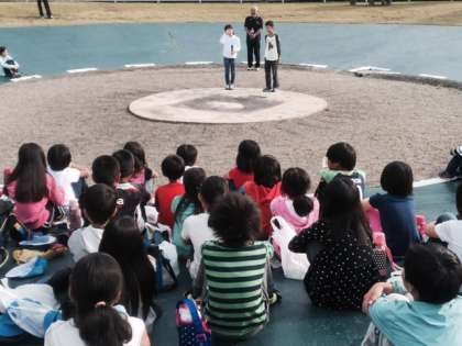 校歌を歌ったり学校の紹介をしたりしました。