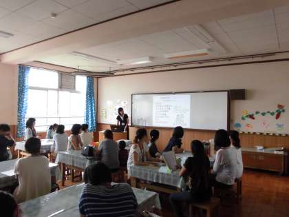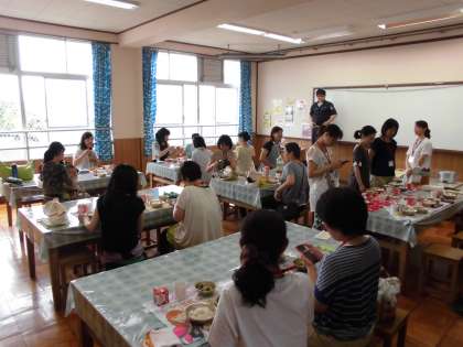 栄養教諭からの食育についての話の後、子どもたちが普段食べている給食を食べていただき、味や量を確認してもらいました。また、子どもたちの給食中の様子も見ていただきました。たくさんのお集まりありがとうございました。