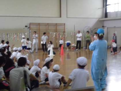中京支部合同運動会が本校でありました。6年生はメダル作りとメダルをつかった「ならんでかけっこ それゴール!」に参加しました。