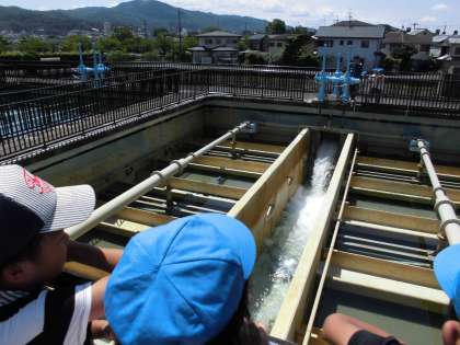 午前中は松ヶ崎浄水場に行きました。「水道水がどのように作られているか」興味深く見学していました。