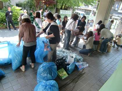 学校では,燃えるごみ,燃えないごみ,缶・ペットボトルと分別しました。4年生は社会科の学習をいかして,正しく分別していました。