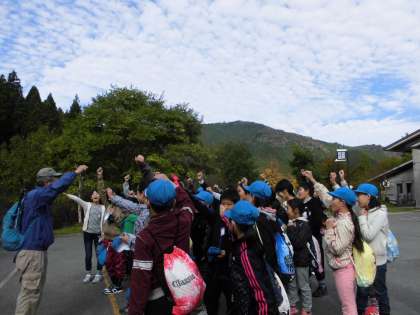 ちなみに,子どもたちの向こうに見えている山にまず登ります。