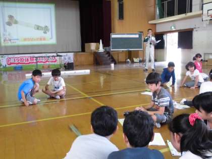 3・4時間目に,(株)トヨタ自動車の方を講師として招き「トヨタ原体験プログラム」を理科学習の一環で行いました。3時間目の体育館では,空気を動力に走る「空気エンジンカー」を使った実験をし,空気の性質を学び,エンジンの仕組みやパワーのすごさ,コントロールの大切さを体験しました。4時間目の運動場では,実際の車を使った様々な体験学習を行いました。同乗体験もクラス全員で行うことができ,子どもたちは楽しんで学習を進めていました。