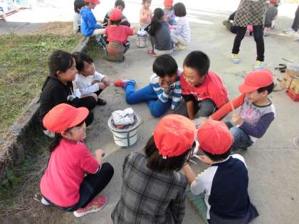 本日5校時,1年,4年,3組で「お芋パーティ」をしました。3組が大切に育てたサツマイモがたくさんできたので,1年1組と4年1組を招待してくれました。みんなで食べるお芋はとても美味しかったです。