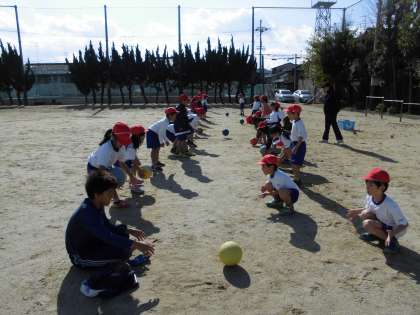 相手に取りやすいボールを投げたり,ころがしたりできるように練習しているところです。当たるのが怖いという思いの子もいましたが,だんだん上手に受けられるようになってきています。