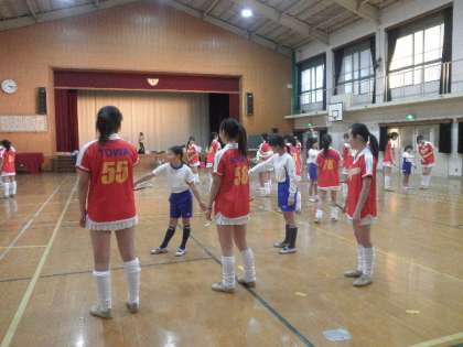 毎年,嵯峨野高校バトン部のお姉さんと交流会をもっています。今年も,たくさんの高校生のお姉さんをお迎えして,今日,楽しい時間を持つことができました。前半は,嵯峨野高校バトン部のみなさんの演技を朱六の子ども達(バトン部に所属していないほかの学年のお友達も)が見せていただきました。笑顔のすてきな演技に,見ている小学生たちも思わず笑顔になっていました。その後,小学生が演技を披露しました。練習の成果がしっかり出せていて,拍手をいただきました。後半は,高校生のお姉さんから丁寧に,演技を指導していただきました。最後は,朱六のバトン部もすてきなポーズとすてきな笑顔ができていました。