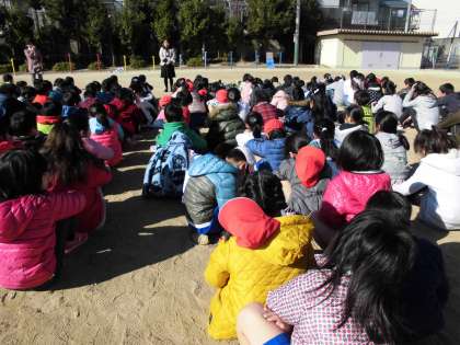 今回は,休み時間中に,大きな地震が起きたことを想定して訓練をしました。近くに先生がいないときにも「お・は・し・も・て」で行動ができるかを確かめました。初めての先生が近くにいない時の訓練だったので,どうしていいか分からず周りを見てから動いている子もいました。思わず友達と話している子もいました。訓練をして,いろいろな課題が見えたので,いざという時にどうすればいいか話し合っていきたいと思います。ぜひ,ご家庭での話題にもしてください。