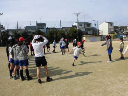 体育学習でなわとびをしています。グループごとに練習をした後,最近は,全員で記録更新に挑戦しています。100回を超えると気が抜けてしまうようで,まだ,4年生の時の記録を超えることができません。