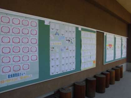 体育館横の掲示板には,給食への感謝の気持ちをまとめたものを掲示しています。またぜひご覧になってください。