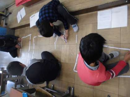 長方形の縦と横の長さをかえた形作りを行い,伴って変わる2つの数量の変化の様子を表にまとめ,きまりを見つける学習を進めています。長方形の周りの長さは18cm,「じゃあ9cmって何?」いっしょうけんめい言葉で説明していた子どもたちです。