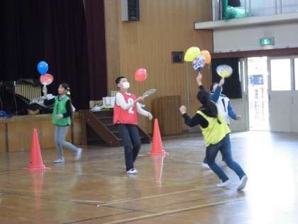 体育館で親子で借り物競争と風船リレーを楽しみました。一緒に活動できて、いい思い出ができました。