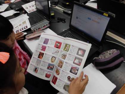 社会科・総合的な学習の一環で,京都の伝統産業について調べています。興味をもったその一つをコンピュータを使って調べました。資料を読み取り,「大事!」と思ったことをメモもしています。
