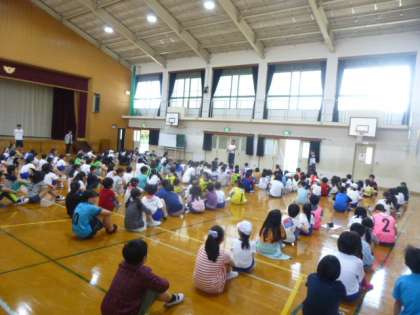 5月13日(金)の中間休み全校で集まり,たてわりの初顔合わせをしました。