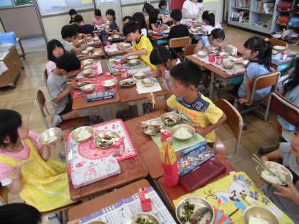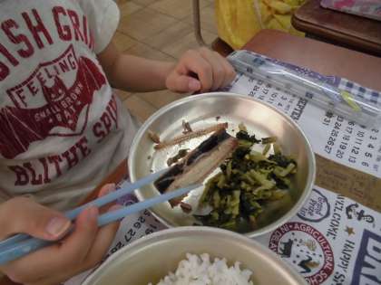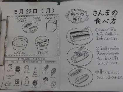 今日の給食,さんまのかわり煮,魚の身の取り方,骨の取り方が随分と上手になってきました子どもたちです。