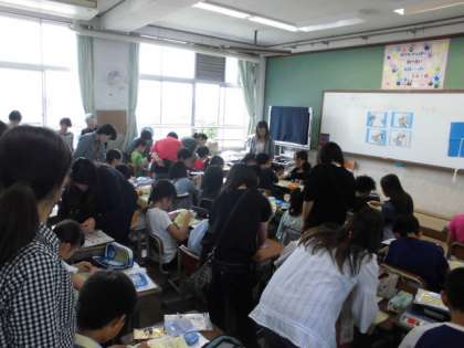 参観では,道徳(勇気を出して)・学活(非行防止教室)・家庭科(ひと針に心を込めて)の授業の様子を見ていただきました。家庭科では,玉結び・玉止めの仕方を学習でしたが,たくさんの保護者の方に入っていただいたおかげで,子どもたちの理解も早かったと感じています。せっかくの休日で,ゆっくりしたいところだったと思いますが,たくさんのご参観,本当にありがとうございました。