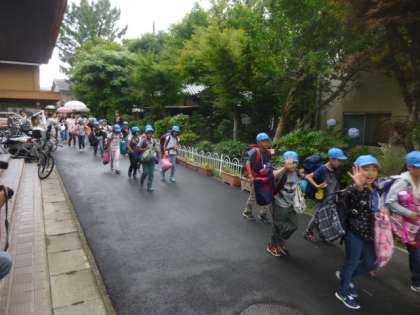 朝,出発式のあと,全員元気にみさきの家に向かって出発しました。