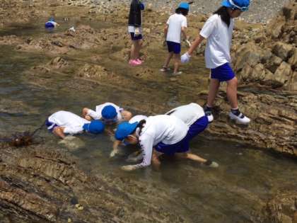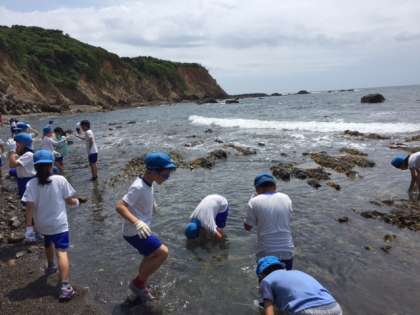 生き物を見つけて大喜び,海にはまって大喜び・・・です。