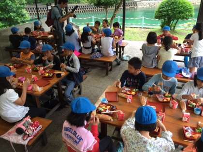 朝食のあと,みんなが使ったバンガローをきれいにそうじしました。