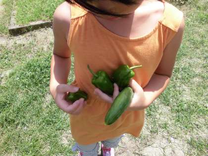 今日も収穫しました!きゅうり1本・ピーマン2個!くじ引きをして順番に,子どもたちは持ち帰っています。