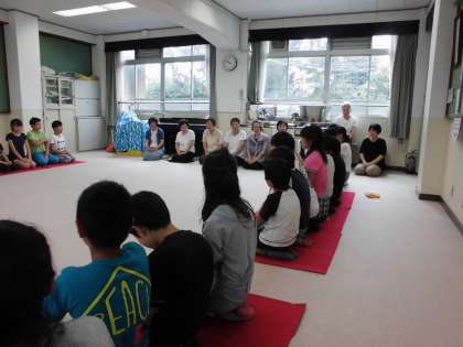 3年生の時にもお茶会があり,女性会のみなさんにたてていただいたお茶を味わいましたが,今回は,自分たちでお茶をたてました。ふくさの扱いも教えていただきました。