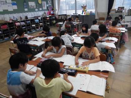 夏休み明けから,グループでの学習を始めています。自分一人では分からなかった問題も,友達と話し合っていく中で分かることがあります。また,全体では話すのが苦手な子がグループでは自信を持って話をしている場面もみられます。