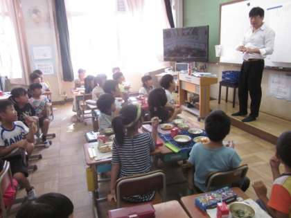 今日もおいしい給食を食べていると…教頭先生がマジックを見せに来てくださいました。ボールペンが髪を突き破ったはずなのに,なぜだか紙は破れていないんです!!びっくりして目を丸くしていた子どもたちでした。