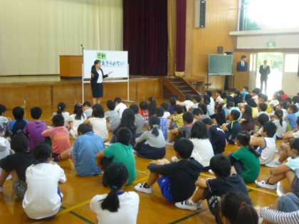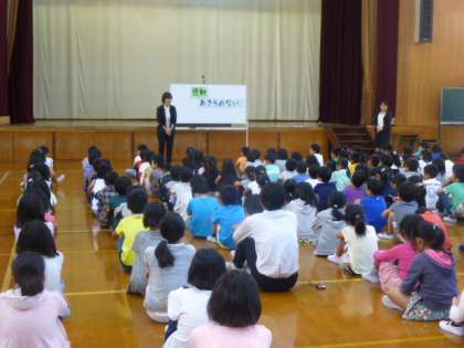 校長先生から「あきらめずに取り組む姿が,人を感動させること」「人が人を感動させることの素晴らしさ」についてお話を聞きました。また6年担任からも,先日の運動会で5・6年生が演じた組体操での感動,当日の朝6年生が,自ら運動会の準備に参加してくれた事への感動について話をしました。
