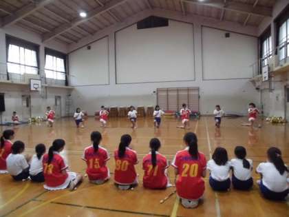 今日は,本校のバトン部と嵯峨野高校バトン部の交流会がありました。先日の運動会での演技を披露した後,高校生の演技を見せていただきました。その後,高校生のお姉さんに新しい技を教えていただきました。いつもの部活動の時間より笑顔いっぱいの小学生になっていたのは,高校生のお姉さんの素敵な笑顔があったからでしょう!ありがとうございました。
