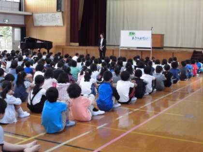 今日は平成28年度前期の終了式があり,校長先生からは『感動』についてのお話がありました。人が人を感動させること,一生懸命な姿には人を感動させる力があることなど,感動したり感動させたりすることは素晴らしいということに気付いた人もたくさんいました。そして,今日の5年生の聞く姿勢が良かったことに校長先生は感動されていたそうです。来週からの『山の家』でも,たくさんの感動を味わってほしいと思っています。