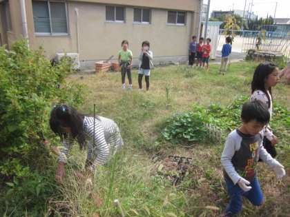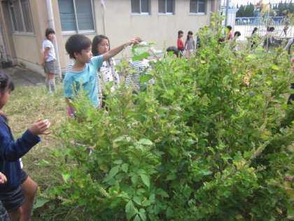 生活科の時間に畑のところに出ました。育てていた野菜のところにもたくさんの虫がいました。また教室前の下駄箱の上にもたくさんの虫かごが並びそうです。