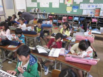 ここ最近,子どもたちが,がんばってすすめているのが鍵盤ハーモニカです。3拍子のリズムにのって「かっこう」を演奏しています。今日のテストでは,練習の成果をしっかりと発揮していました。