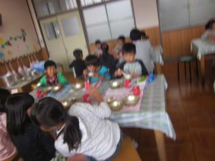 前田先生に来ていただき,給食献立に出ている魚を教えていただきました。イワシ・サンマ・カツオ・サバ・サワラ・ハタハタ…たくさんの種類に驚いていました。