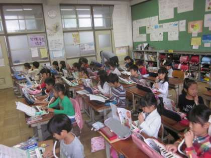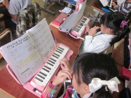 今日は2拍子の練習です。「山のポルカ」,ちょっと難しいようです。今日,鍵盤ハーモニカを持ち帰っています。全員合格の「かっこう」と合わせまして,聞いてあげてください。