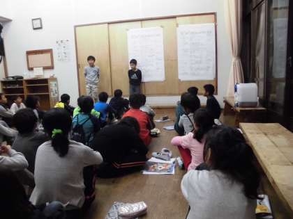 その後,みんなの前で,グループごとに今日の振り返りを発表しました。
