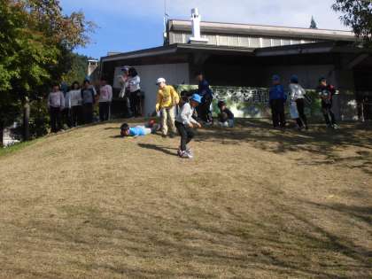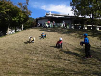 そのうち,シートをボードのように使い,滑る子どももいました。