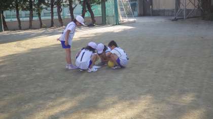 体育科「ポートボール」の学習を進めています。「チームの時間」に1試合をふり返り,作戦を考え,次の試合にいかしていきます。