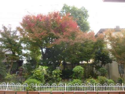 あちらこちらでもみじが色づく季節となっていますが,我が朱雀第六小学校の正門前,朱六の森,ふれあい広場も美しい紅葉の時期を迎えています。