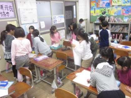 2年生のクラスには,誕生日係・マジック係・本係・勉強係・クイズ係・遊び+道具係・マンガ係があります。クラスのみんなを楽しくする活動を,みんなで楽しんで進めていきます。
